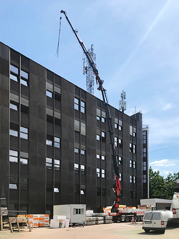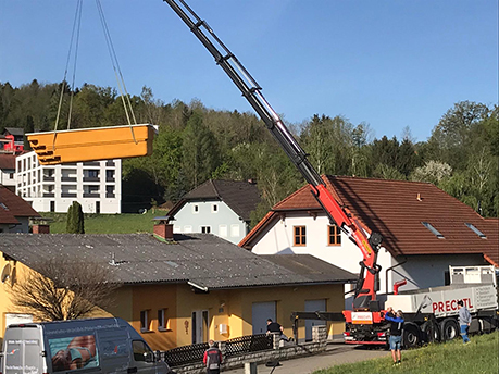 Wir von der Firma Prechtl stellen uns komplizierten Anforderungen in Sachen Dach und Fassade. Unser eigener Fuhrpark ist unter anderem mit zwei leistungsstarken LKW-Krans ausgestattet. Mit ihnen ist es uns möglich, Kran- und Hebearbeiten bis zu einer Traglast von 4300 kg eigenständig durchzuführen.